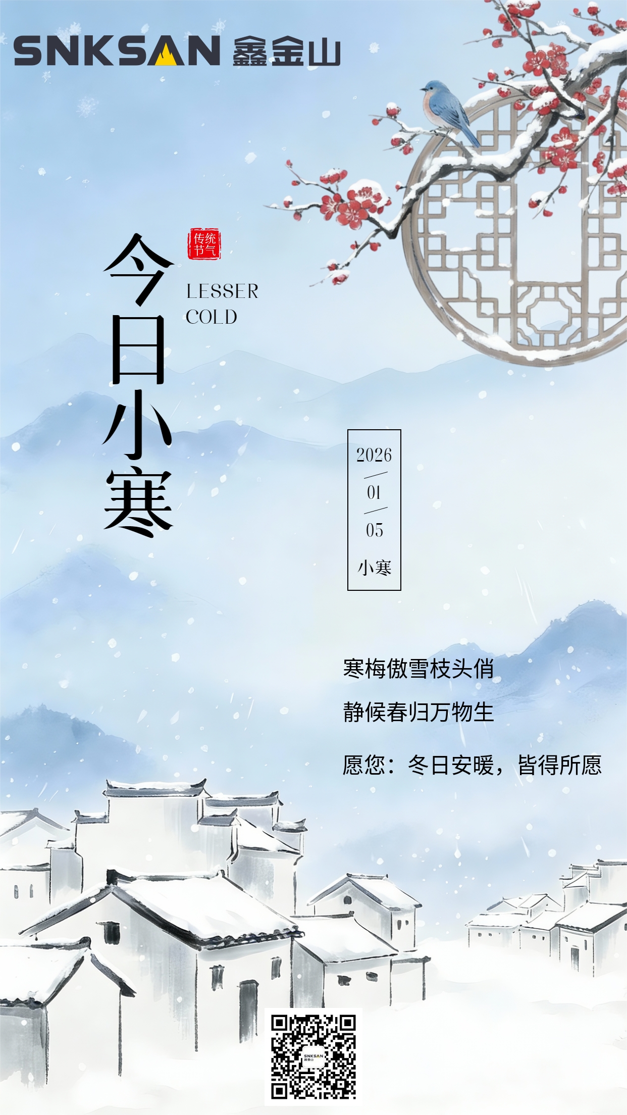 導(dǎo)讀:今日小寒 小寒,是二十四節(jié)氣中的第23個(gè)節(jié)氣冷氣積久而寒,小寒是天氣寒冷但還沒有到極點(diǎn)的意,它與大寒、小暑、大暑及處暑一樣,都是表示氣溫冷暖變化的節(jié)氣。